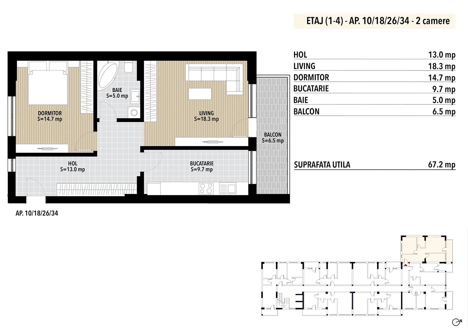 ** suprafele sunt calculate conform proiectului, pot exista mici diferențe față de suprafețele măsurate la recepție