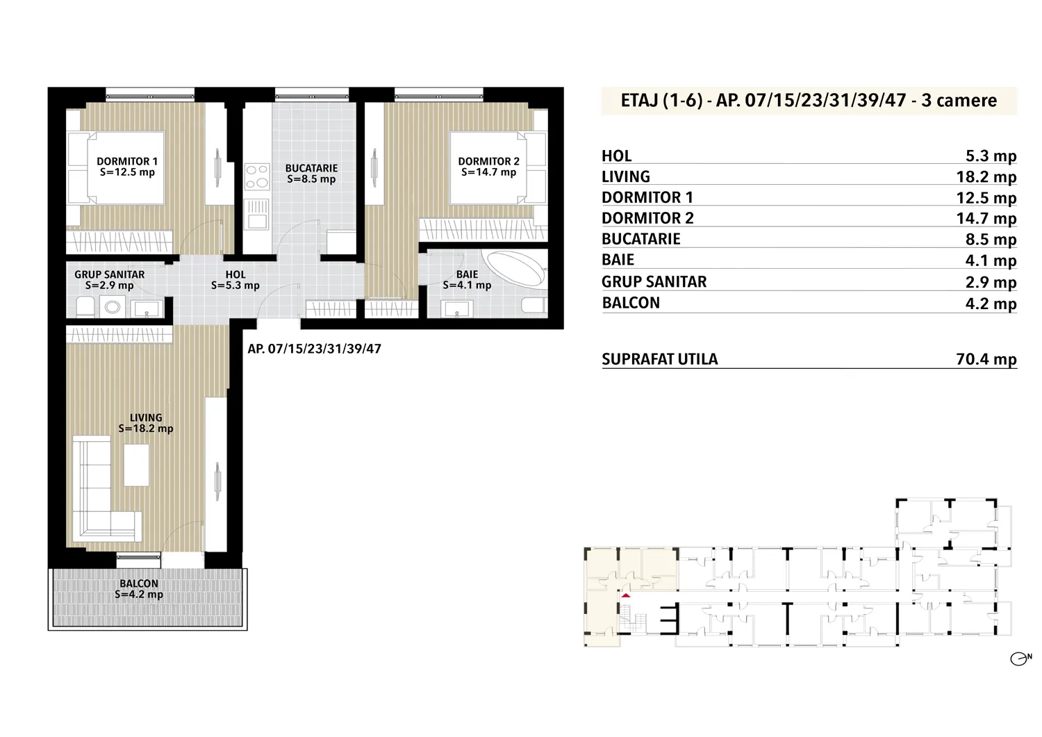 ** suprafele sunt calculate conform proiectului, pot exista mici diferențe față de suprafețele măsurate la recepție