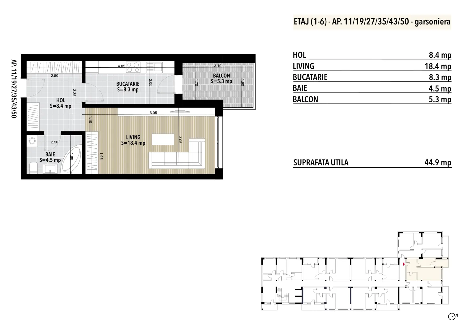 Aceasta garsoniera este ideala cu o suprafata utila generoasa de 46.2 mp, ideala pentru o persoana sau un cuplu. Acesta dispune de un living spatios, o bucatarie deschisa si o baie moderna.